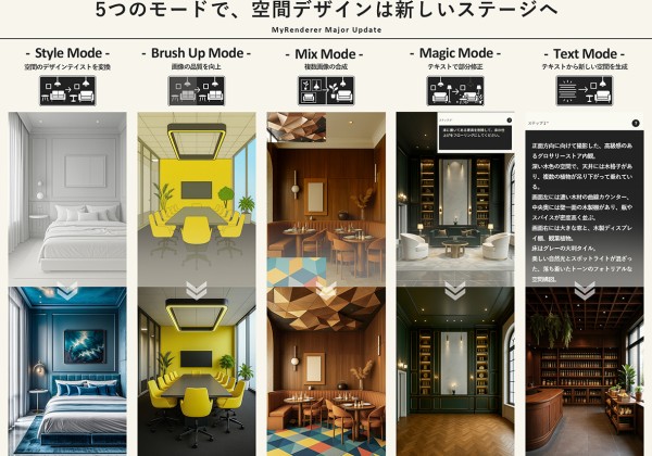 ㈱CGworksは1月6日、建築・空間デザインに特化した画像生成AIサービス「MyRenderer」の大幅なアップデートを実施...