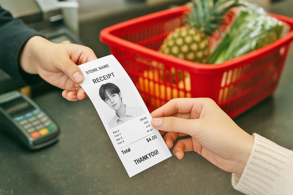 「かみ推しレシート」とは、東芝テック㈱のクーポン発券クラウドサービス「テッククーポンデリ」の印字スペースを活用し、日常の買い物レシート内にファン自身が作成した推し広告(センイル/応援広告)を掲載して印字できるサービス。“推し活”と買い物がリンクする新体験を提供するもので、ファンが自らデザインしたメッセージやイラストを、全国のスーパー・ドラッグストアのレシートに印字し、「推しをお祝いするレシート」として記念に残すことができる。