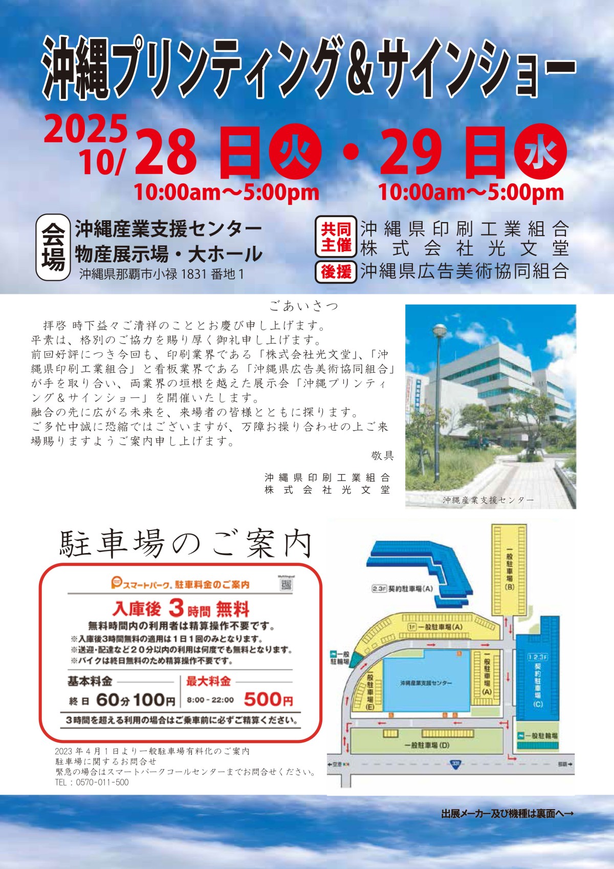 【沖縄県印刷工業組合、光文堂】「沖縄プリンティング&サインショー」を10月28・29日に那覇市の沖縄産業支援センターで開催
