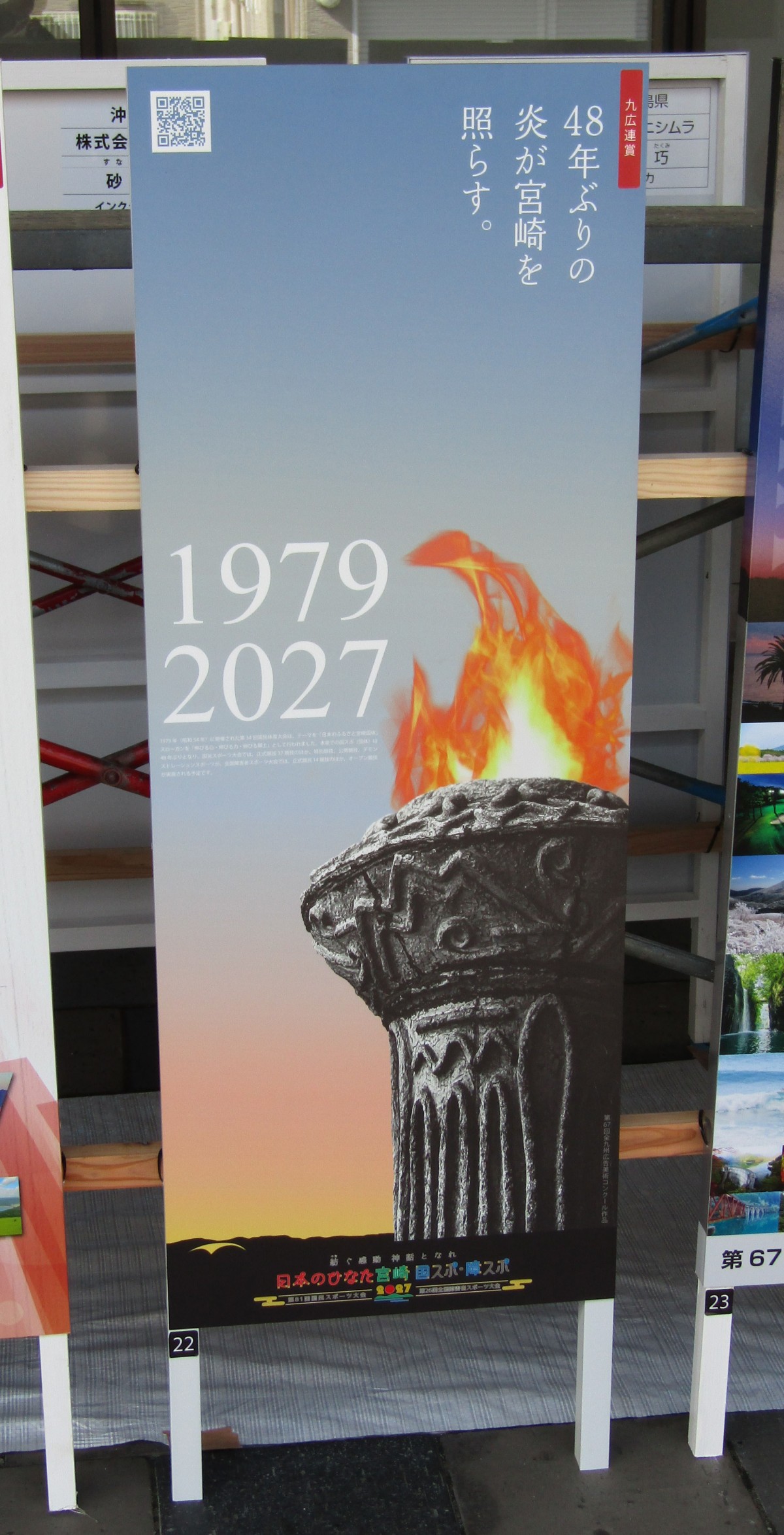 今年は、2027年に宮崎県内で「第81回国民スポーツ大会」と「第26回全国障害者スポーツ大会」が開催されることから、大会の愛称である「日本のひなた宮崎 国スポ・障スポ」がメインテーマ。実施目標である①「チームみやざき」で創り上げる大会 ②スポーツの素晴らしさを体感できる大会 ③宮崎県の魅力を全国に発信する大会 ④「未来のみやざき」づくりを進める大会 ⑤共に支え合う社会づくりを進める大会――を九広連各会員の技能で屋外広告の形で表現。大会の成功や県民の機運醸成の一助となる作品を募ったもの。