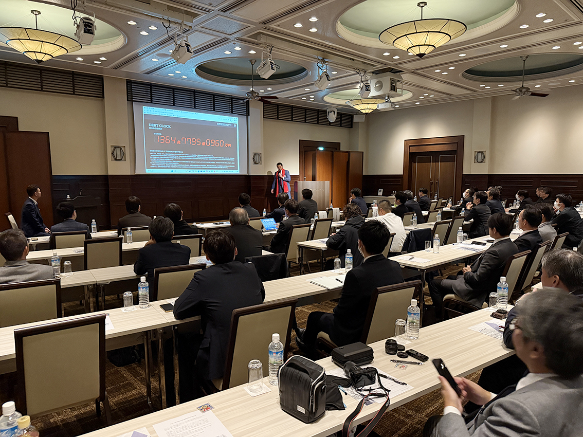 場所をオリエンタルホテル東京ベイ(千葉県浦安市)に移し、セミナーを開催。冒頭、ユーザー会の西川誠一会長が「輪転機を使用する商業印刷の立場から見ると、インクジェットビジネスは印刷物に様々な付加価値を与え商材も幅広く、非常に魅力的に映る。厳しい業界環境ではあるが、今日のセミナーからヒントを見つけたい」と挨拶。