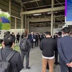 当日は、まず会員企業である㈱昭栄美術のサインセンターがあるベイスタジオ(千葉県市川市)を見学。新導入したAGFA製「OBERON RTR3300」と「JETI MIRA 2732HS」をはじめ、多数のプリンター・加工機が並ぶ工場内を視察した。また同社の環境に対する取り組みとして、廃材をペレット化して3Dプリンターで再び製品化するアップサイクルの仕組みが紹介された。