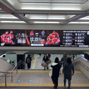今回のリニューアルは、これまで使用してきたネオン管から省エネ・長寿命により、環境負荷の低いLEDを全面に採用したのが特長。また、日本国内はもとより、海外からの観光客など通行量の多い南面はLEDサイネージビジョン(高さ約32✕横幅約3.2m)に変更。動きを取り入れた表示や情報を発信。文字をスクロール表示できるため、文字数制限のない発信が可能にするなど多言語表示にも対応している。