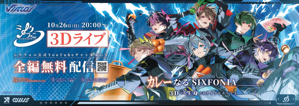 「Six-tuation vol.Ⅱ -Virtual-」の世界観を再現したスペシャルアドトラックが、札幌・仙台・東京・名古屋・大阪・福岡の全国6都市を巡回中。外観には「Six-tuation vol.Ⅱ -Virtual-」のライブビジュアルを大胆に使用していますが、反対の側面をよく見るとメンバーが持つ武器が、謎のカレーの具材に変化しているという異色のデザインとなっている。「銃がにんじん?じゃがいも?お肉?」そんな“華麗(カレー)なる変身”を遂げたビジュアルとともに掲げられているのが、「カレーはライブと一切関係ありません。ノリです。」という、シクフォニ節が炸裂する一文。“カレーなる”言葉遊びに加え、メンバーの個性とユーモアを詰め込んだ完全オリジナルデザインの中には、3Dオンラインライブが完全無料配信であることを伝える「全編無料」の文字も大きく掲出した。