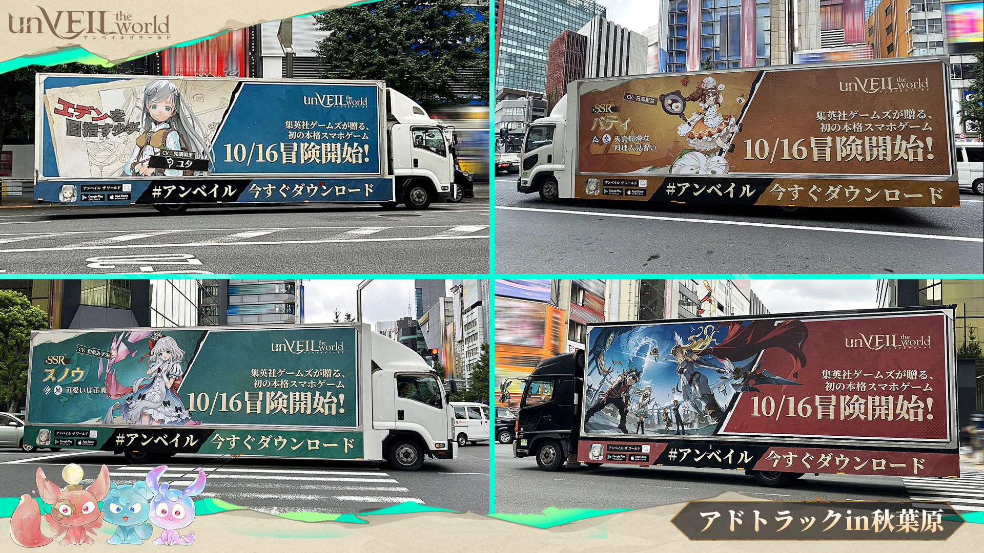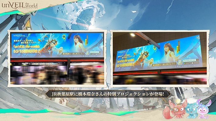 集英社ゲームズとNetEase Gamesが共同開発した冒険活劇ストラテジックRPG『unVEIL the world -アンベイル ザ ワールド-』のサービス開始を記念して、東京の秋葉原、渋谷、池袋、新宿の人気商業地域および秋葉原駅の改札内(山手線内回りホーム)、ゲームキャラクターと橋本環奈さんを起用した大型広告が同時掲出された。さらに、6台のラッピングカーによるプロモーションキャラバンが秋葉原の中心部を走行するなど、東京では多岐にわたるオフラインキャンペーンを展開している。