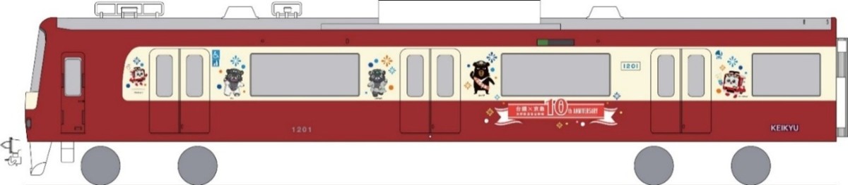 車両デザイン=連携する3社のキャラクター(京急電鉄:けいきゅん、台鉄:テル・ハナちゃん、台湾観光庁:オーベア)をあしらったデザイン。このほか、ヘッドマークにデザイン。まど上ポスター(日本4種類・台湾4種類の全8種類)、中づりポスター(日本4種類・台湾2種類の全6種類)、ドア横ポスター(日本2種類・台湾2種類の全4種類)