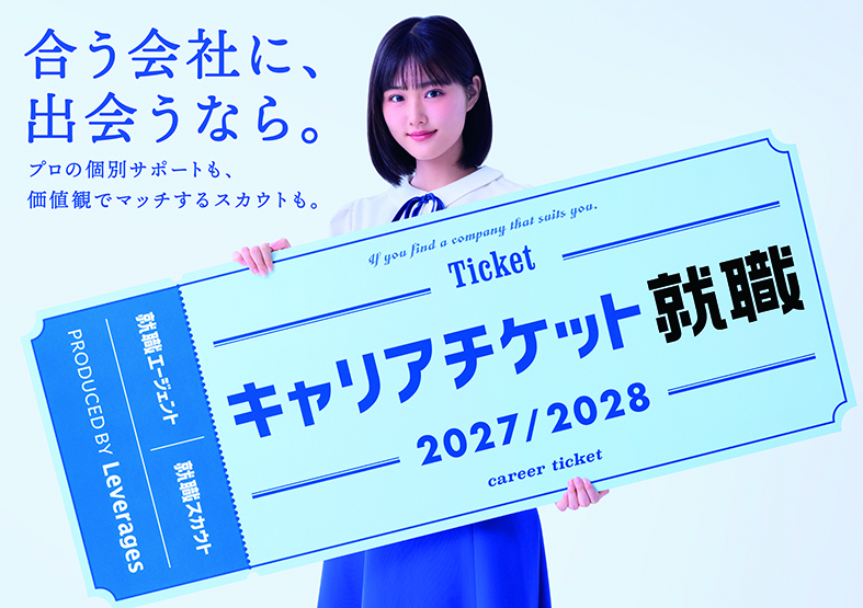 レバレジーズ㈱は12月21日から、同社が運営する新卒学生向け就職支援サービス『キャリアチケット就職』のさらなる認知向上を目的に、新CM『頼れるチケット・キャリチケの歌』篇他を放映開始した。