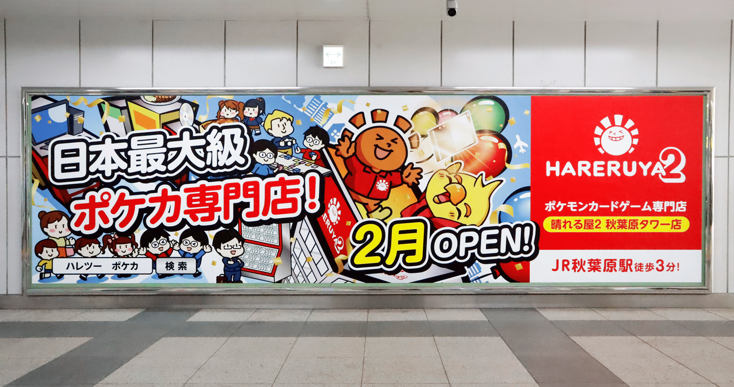 ㈱晴れる屋(本社東京、代表取締役社長・岩田太氏)は1月19日から6週間にかけ、JR秋葉原駅構内および駅周辺の秋葉原電気街に、新店舗「晴れる屋2 秋葉原タワー店」開業を告知する広告を展開した。