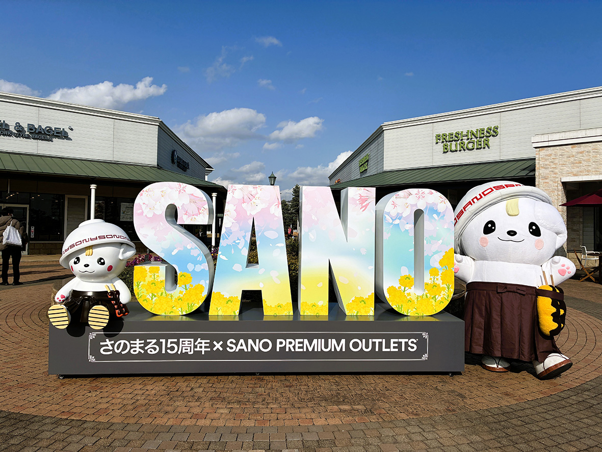 ひとつは、佐野市のブランドキャラクターさのまるを起用したフォトスポット。立体的に表現された「SANO」の文字を背景に、季節ごとに装飾が変化する仕様となっている。現在は2026年12月までの予定で、「さのまる」誕生15周年を記念したコラボレーションデザインを展開しており、期間限定の特別演出として来場者の関心を集める。また、同スポットで撮影した写真をInstagramに投稿すると、オリジナルシールがもらえるキャンペーンも実施している。