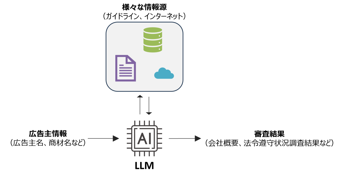 これまで広告審査を行うにあたり、広告主の公開情報や様々なガイドラインとの照合などを行い、近年、DOOH広告配信数の大幅な増加に伴い、審査時間や運用コストの増大が課題となっていた。DOOH広告審査業務は主に「広告主審査」と「意匠審査」の2つの審査があり、今回はDOOH広告を配信する上での前提である広告主の信頼性を確認する「広告主審査」を効率化する技術を開発したという。