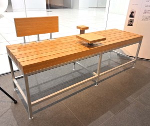 | 斜面と水平、2つの地形に対応できるベンチ。設置する場所は国籍・年代が幅広い下北沢。背もたれ、サイドテーブルなどのアタッチメントは移動でき、多様な人々の使い方に応える。 |