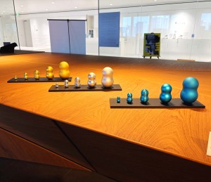 | 同じ素材・色なのに、表面の仕上げが全て異なる5段階のマトリョーシカ。表面処理ひとつで見た目・手触りがまったく変わる=印象を変えられるということを体験できるプロダクト。 |
