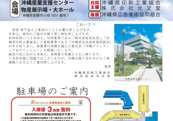 沖縄県印刷工業組合、㈱光文堂は10月28日・29日の2日間(午前10時~午後5時)、「沖縄プリンティング&サインショー」を那覇...